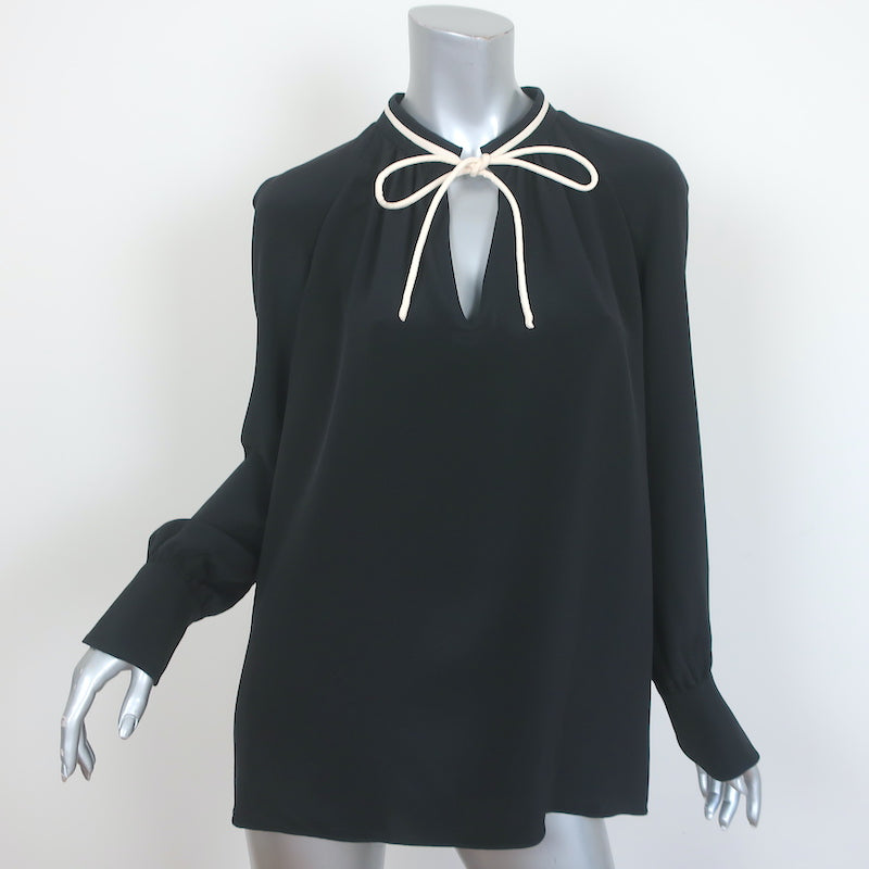 Derek Lam Tie-Neck Blouse Sonia Black Silk Size US 10 Long Sleeve Top NEW Measurements