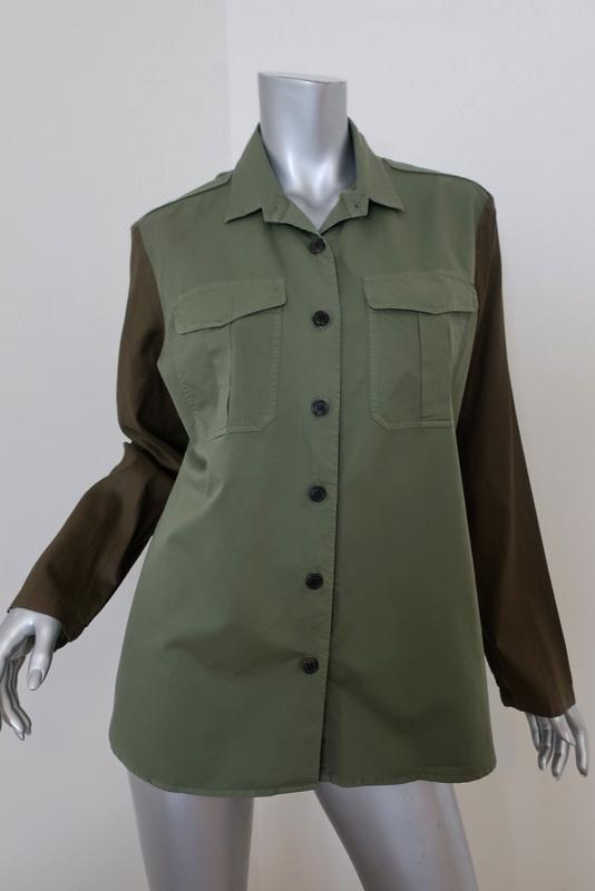 Dries Van Noten Contrast Sleeve Army Shirt Olive Cotton Size 44 Long Sleeve Top Measurements