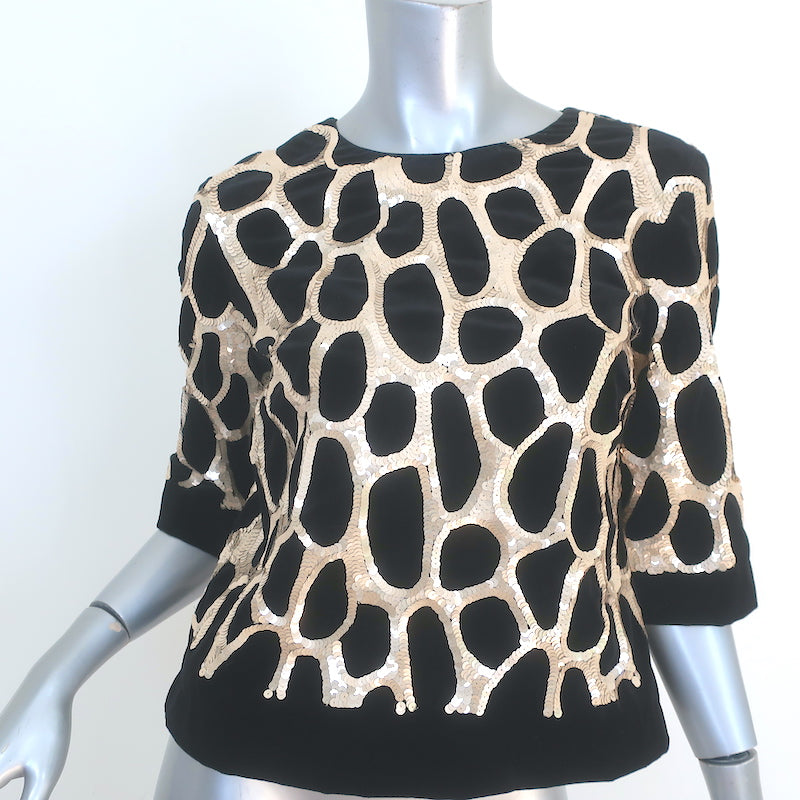 Dries Van Noten Giraffe Sequined Top Black Velvet Size 36 Short Sleeve Blouse