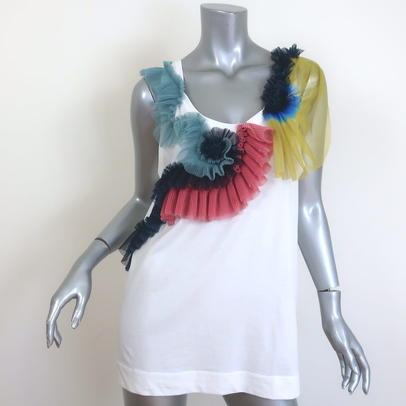 Dries Van Noten Havil Ruffled Tulle-Appliqued Tank Top White/Multi Size Large Measurements