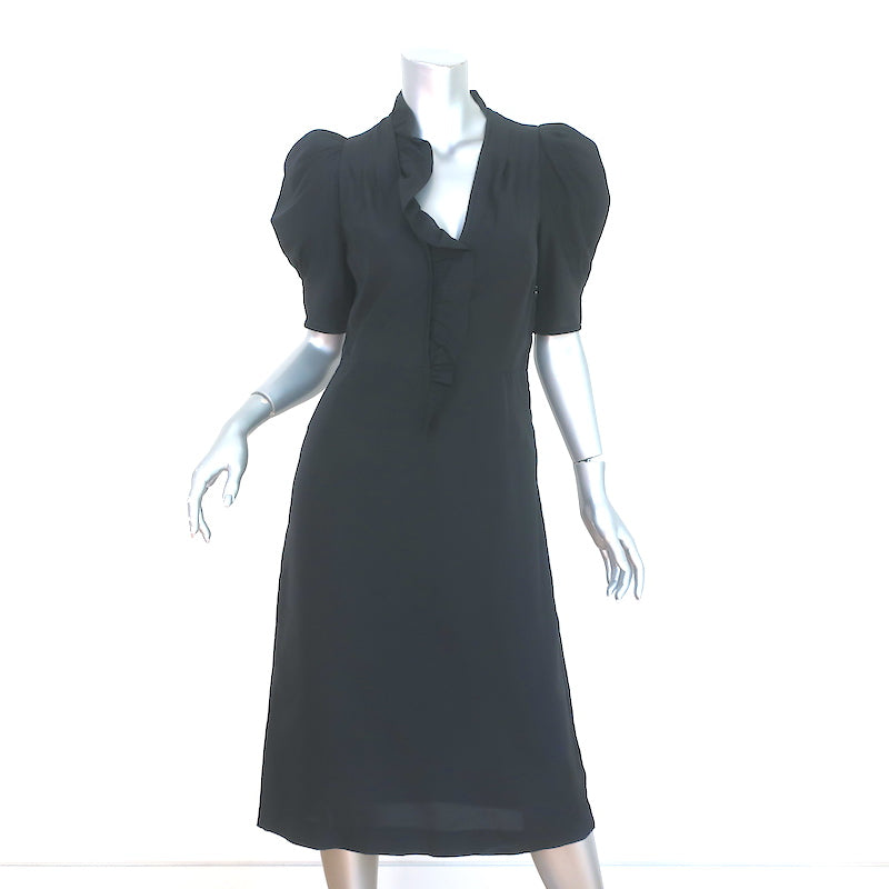 Dries Van Noten Puff Sleeve Dress Black Ruffled Cupro Size 36