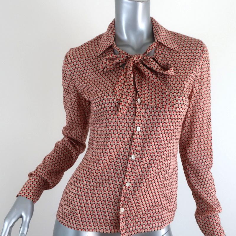 Equipment Blouse Beige/Red Printed Stretch Silk Size Small Tie Neck Shirt Measurements