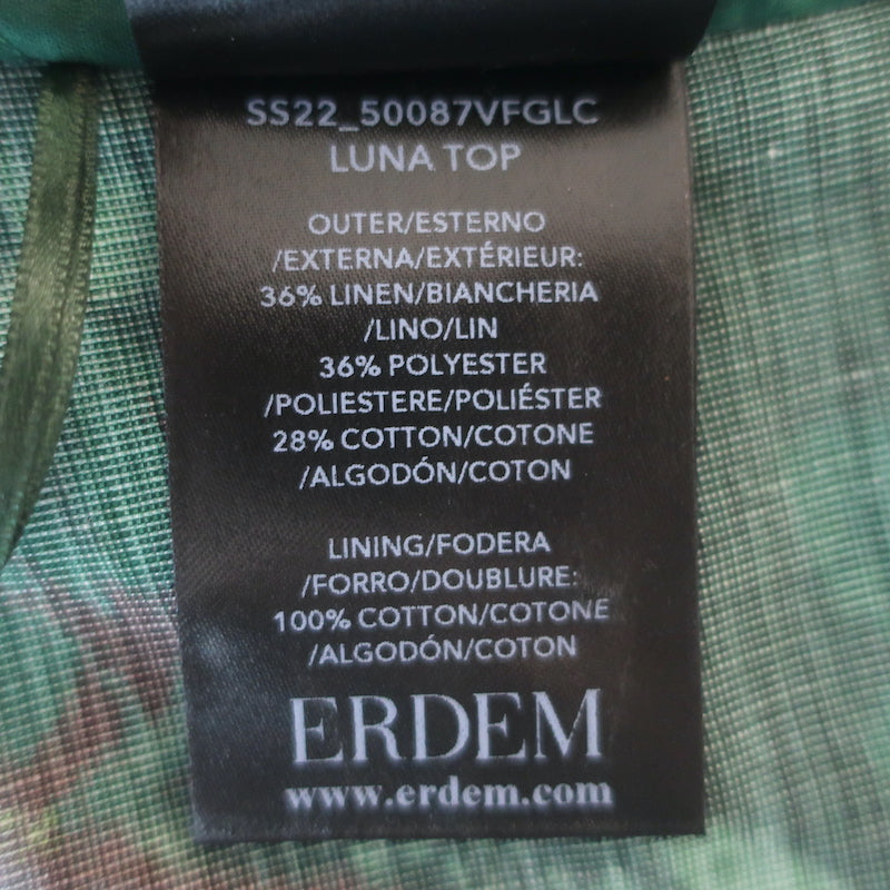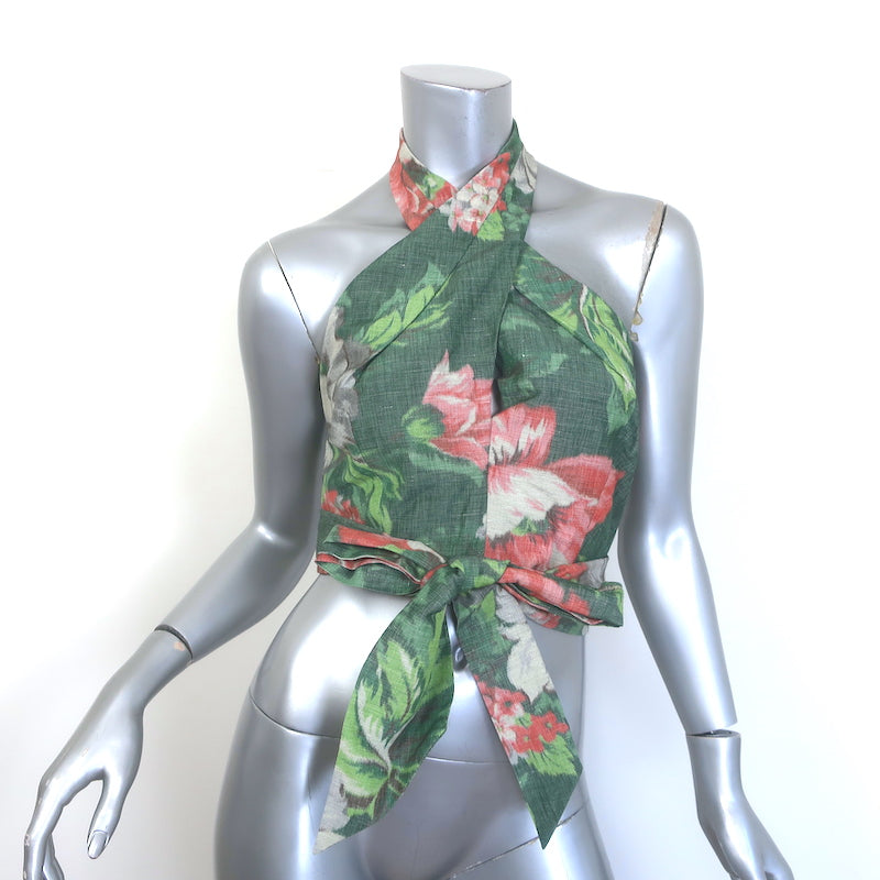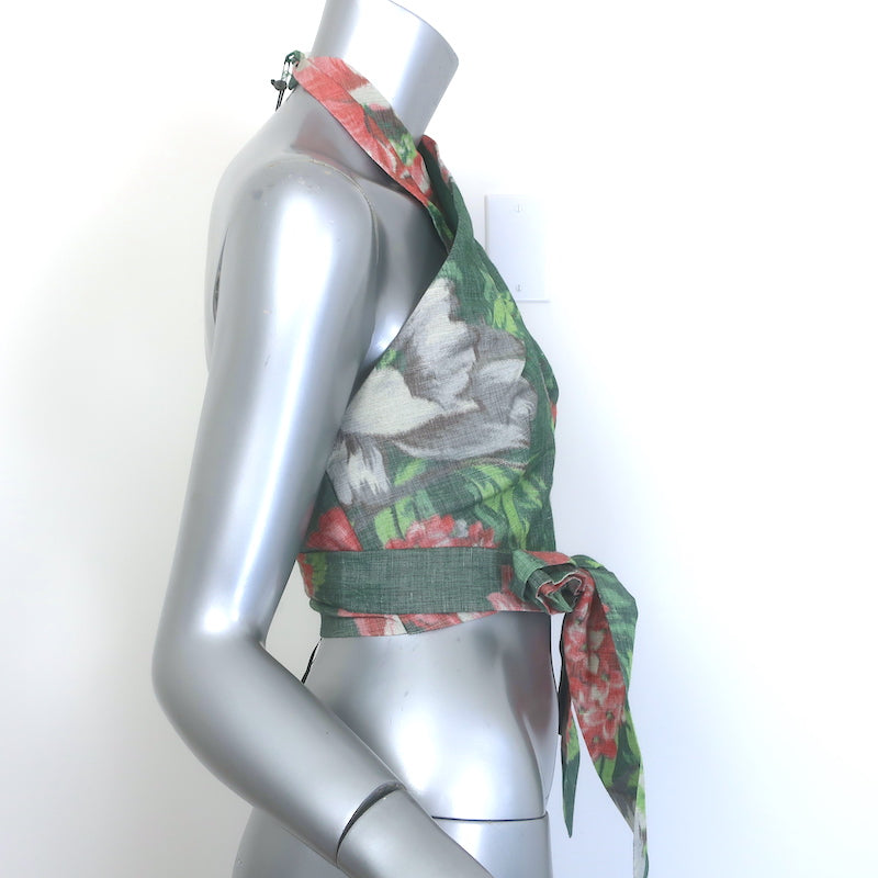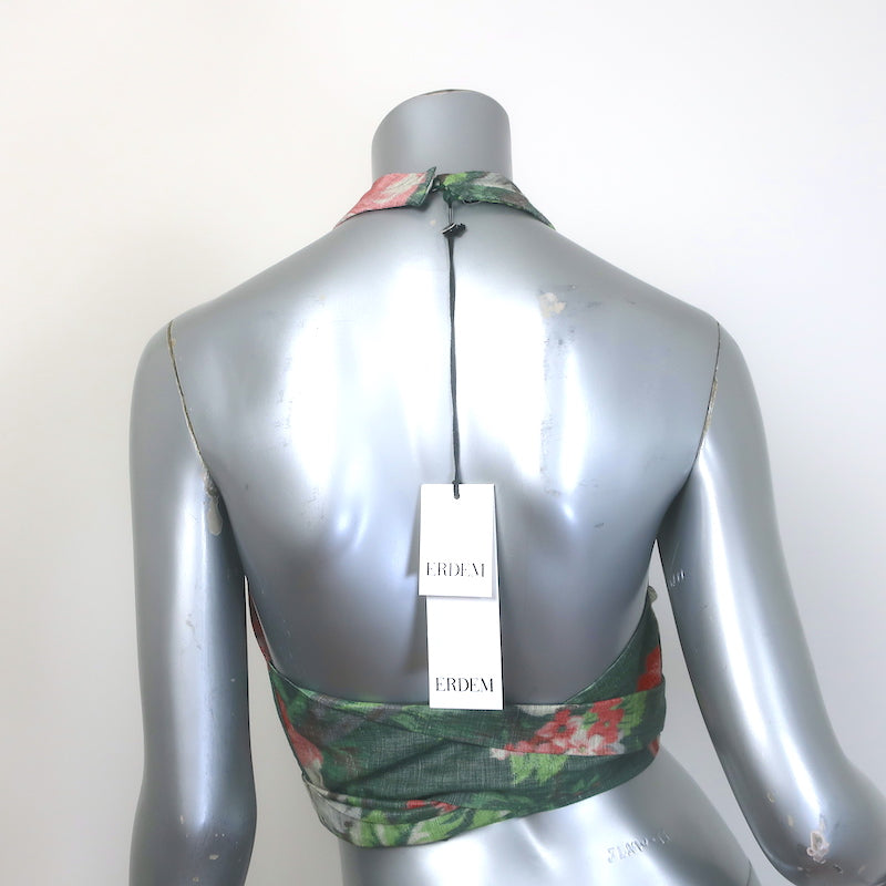 Erdem Luna Cropped Halterneck Wrap Top Green Floral Print Linen Size US 6 NEW