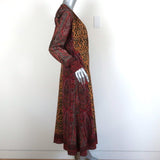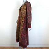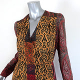 Etro Midi Dress Paisley Print Stretch Crepe Size 44 Long Sleeve V-Neck