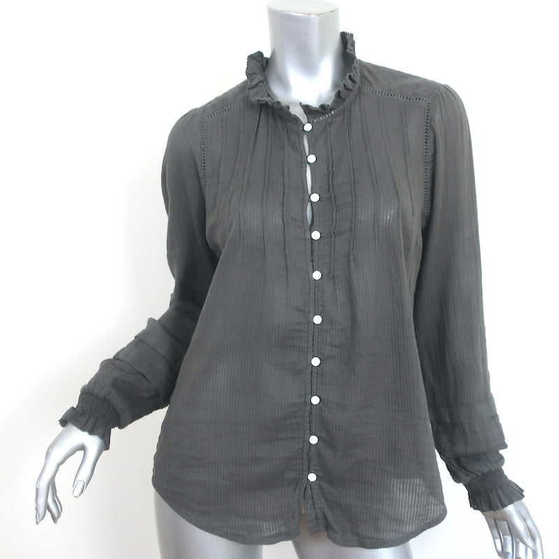 Faherty Willa Top Dark Gray Pintucked Cotton Size Small Long Sleeve Blouse Measurements