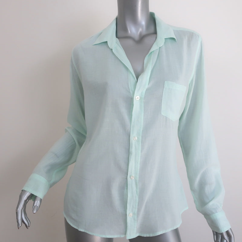Frank & Eileen Barry Button-Up Shirt Mint Cotton Size Medium Long Sleeve Top Measurements