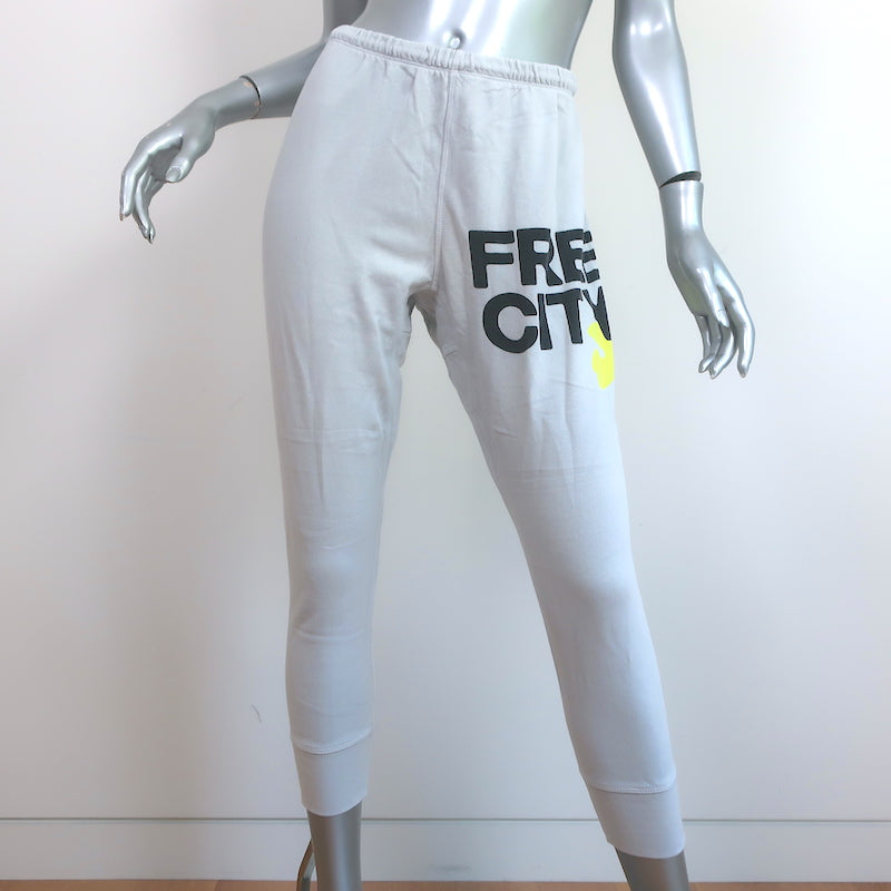 FREECITY 3/4 Sweatpants Light Gray Cotton Size Small Measurements
