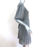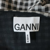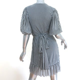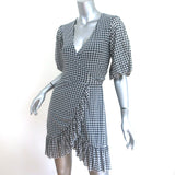 GANNI Mini Wrap Dress Ruffled Black & White Gingham Mesh Size 32 Puff Sleeve