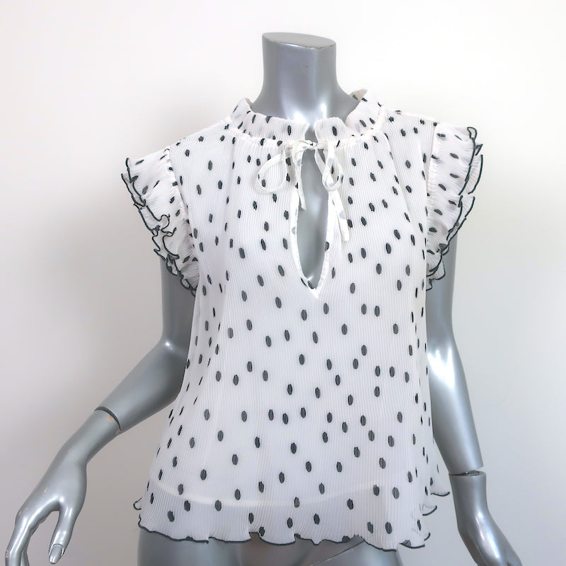 GANNI Polka Dot Top White/Black Pleated Georgette Size 36 Flutter Sleeve Blouse Measurements