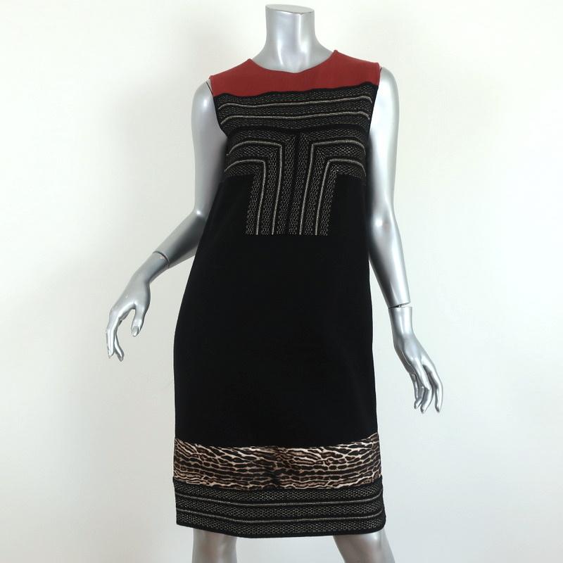 Giambattista Valli Dress Leopard-Trim Black & Gold Knit Size 44 Sleeveless Shift