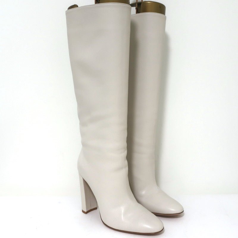 Gianvito Rossi Laura Knee High Boots Cream Leather Size 37 High Heel