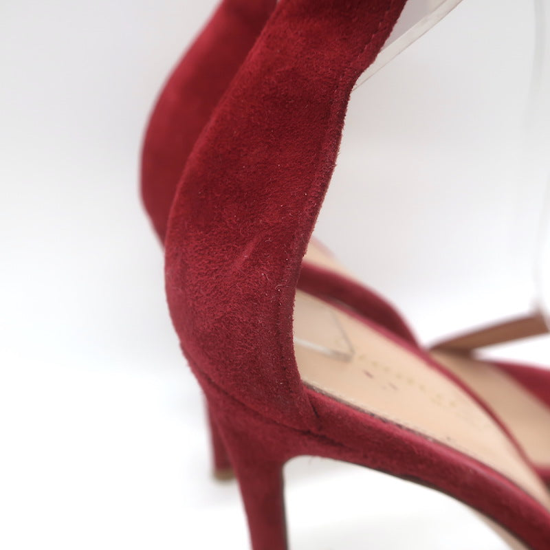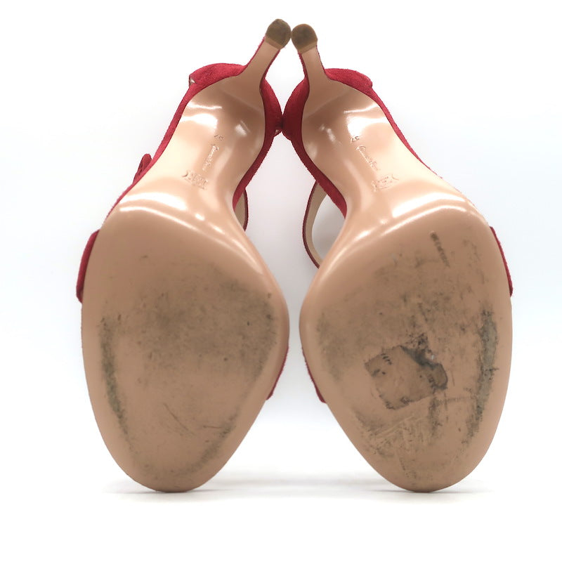 Gianvito Rossi Portofino 105 Ankle Strap Sandals Red Suede Size 37 Measurements