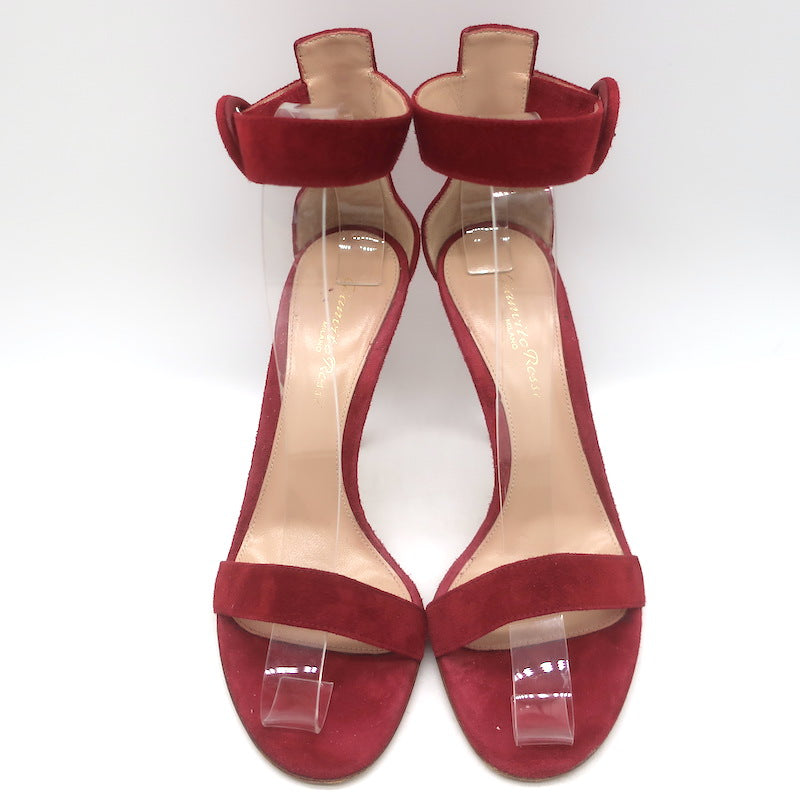 Gianvito Rossi Portofino 105 Ankle Strap Sandals Red Suede Size 37