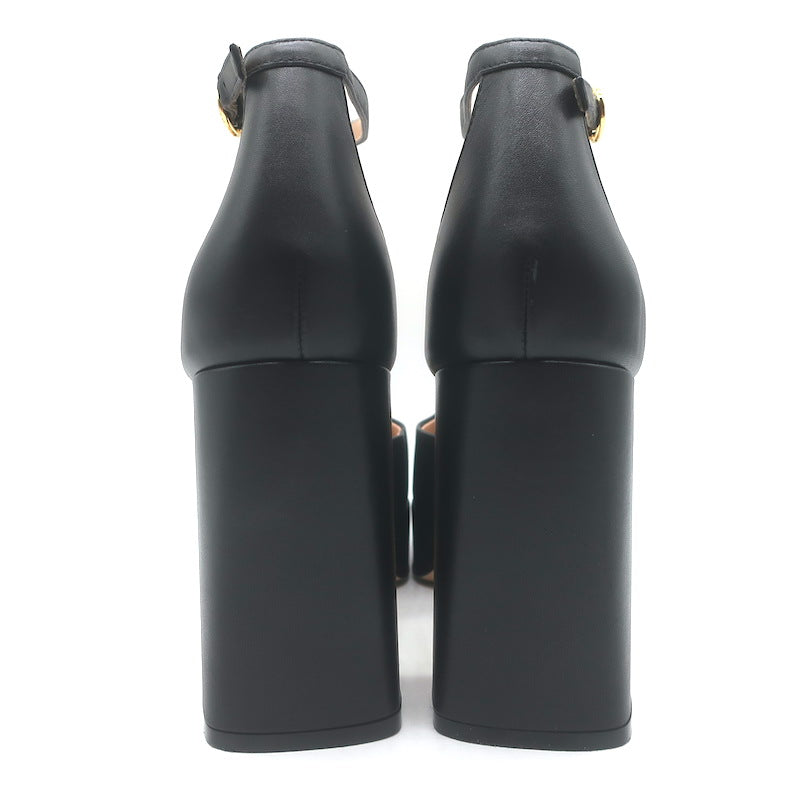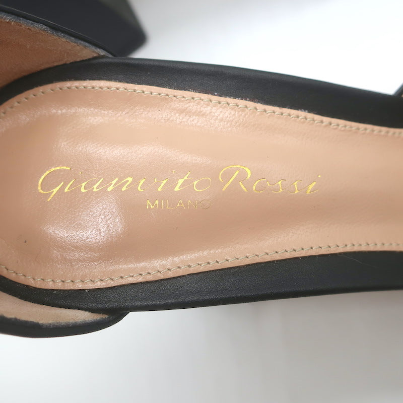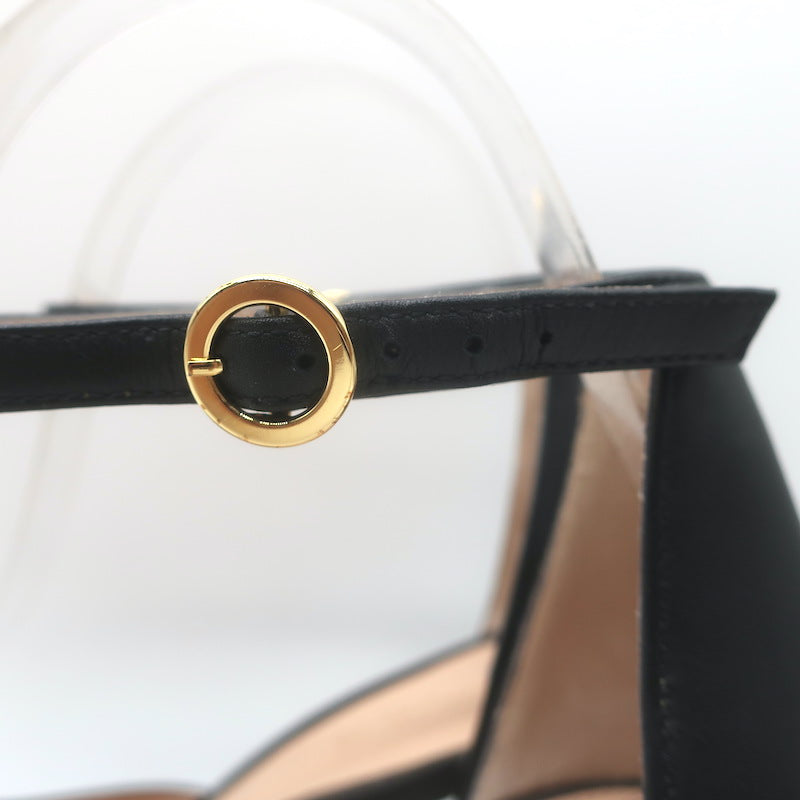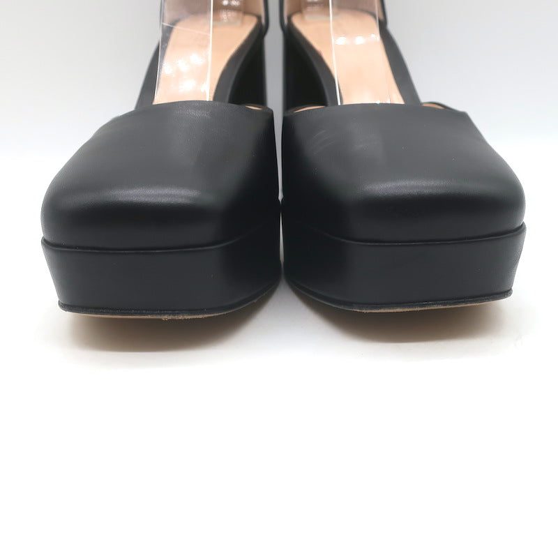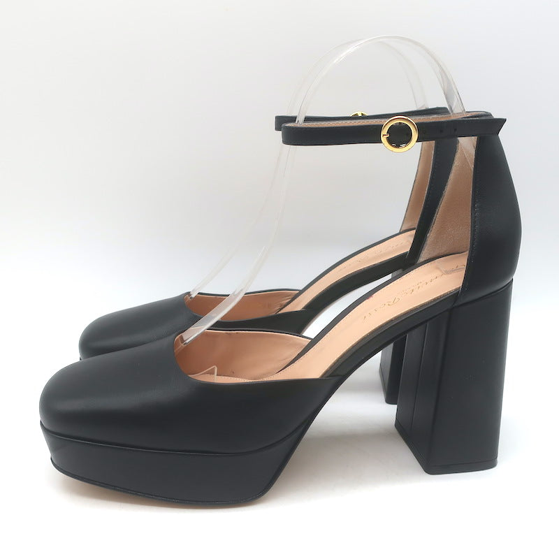 Gianvito Rossi Vian Ankle Strap Platform Pumps Black Leather Size 39