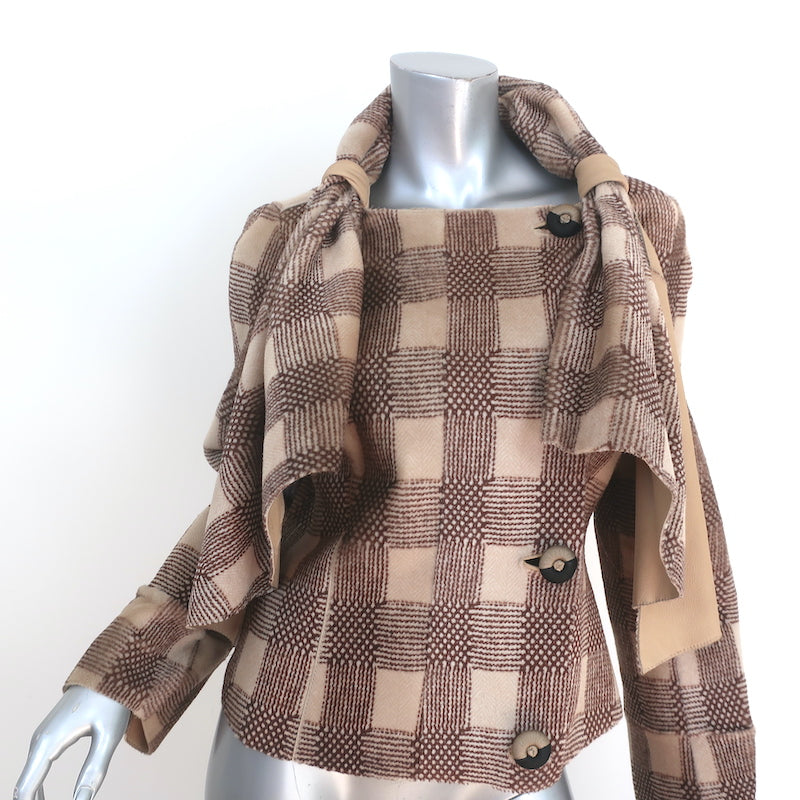 Giorgio Armani Plaid Jacket Beige/Brown Lamb Fur Size 46 Measurements