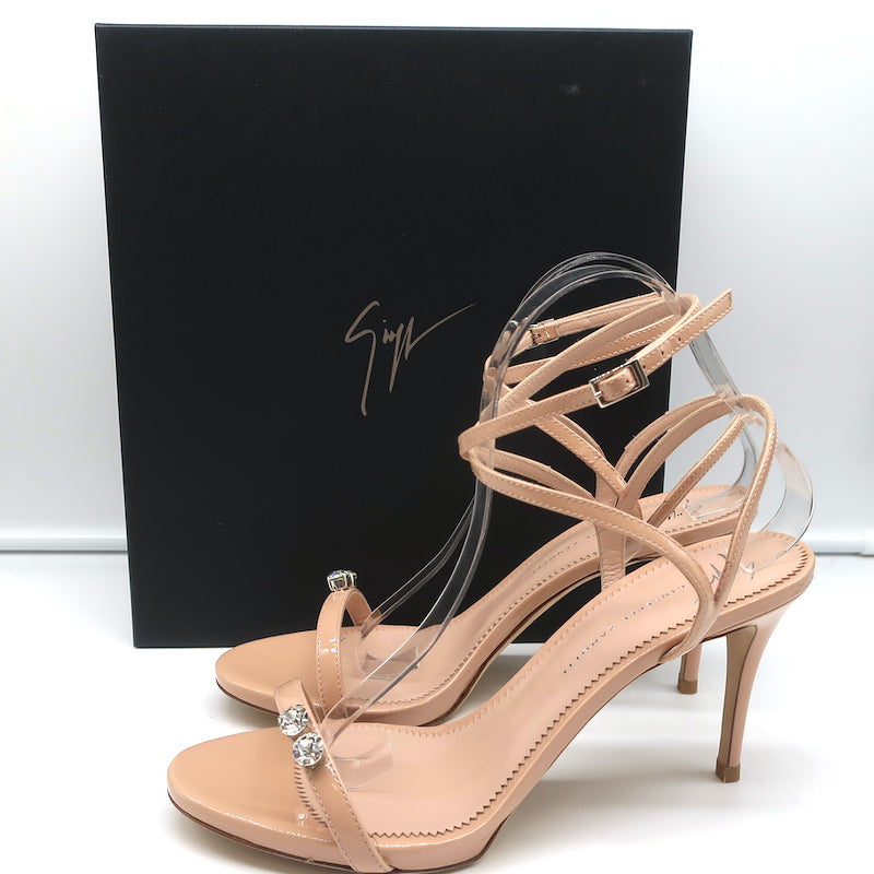 Giuseppe Zanotti Crystal-Embellished Sandals Ellie Nude Patent Size 39.5 NEW