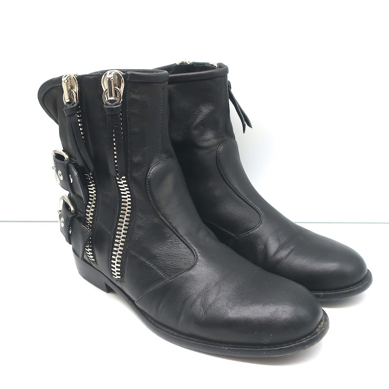 Giuseppe Zanotti Zipper Moto Boots Black Leather Size 39 Flat Ankle Boots Measurements