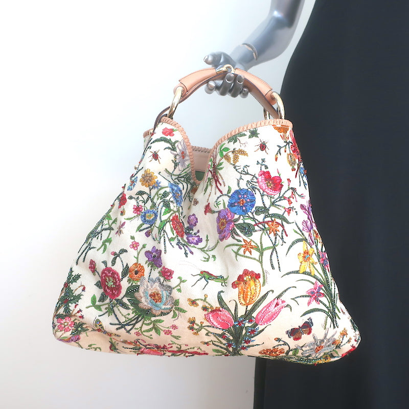 Gently used. Great condition. No major wear, faint brown smudge on back below top edge and a few very faint gray smudges on base. A couple of small scuffs on underside of handle. Does not come with Gucci Dustbag