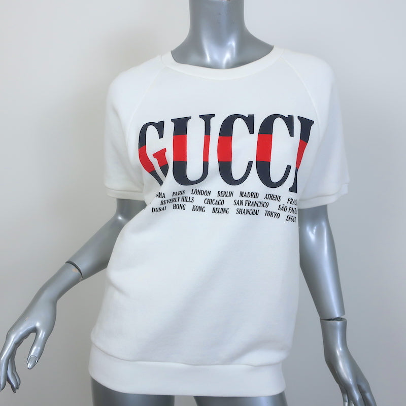 Gucci Cities Short Sleeve Sweatshirt Top White Cotton Size Extra Small