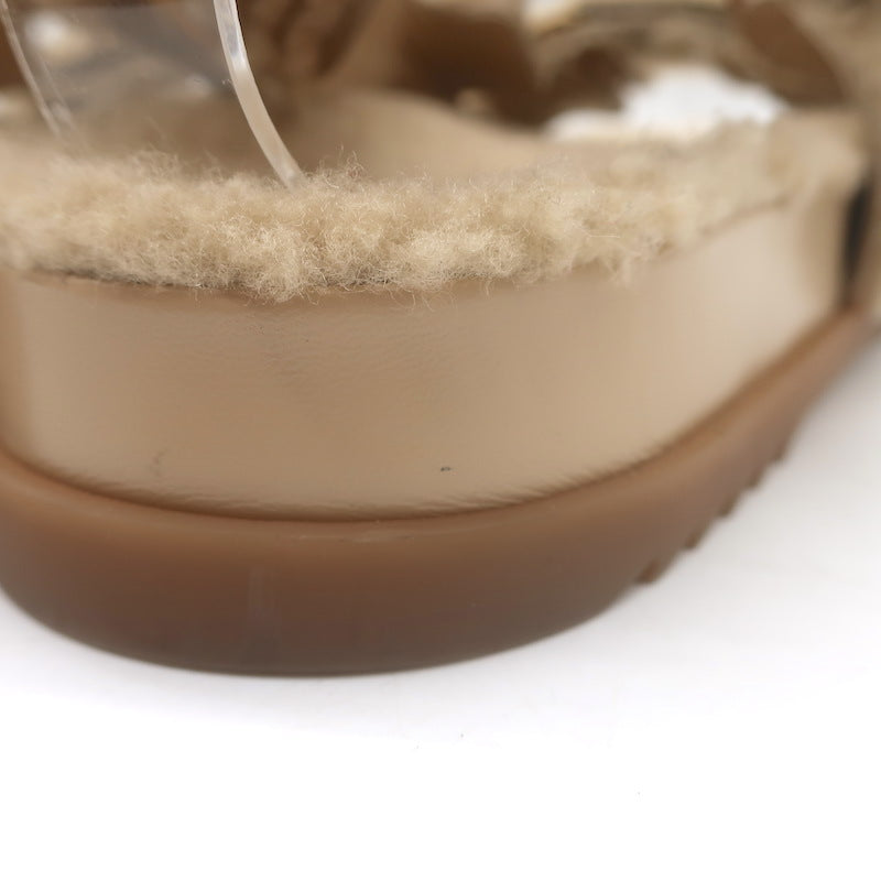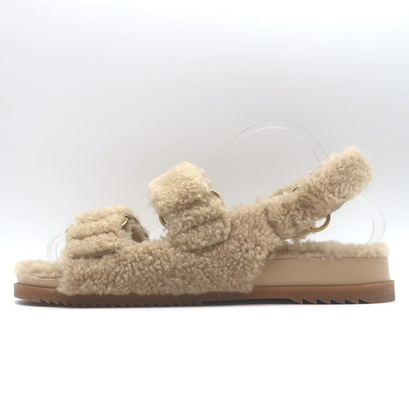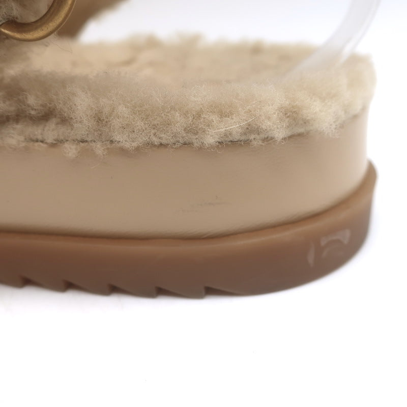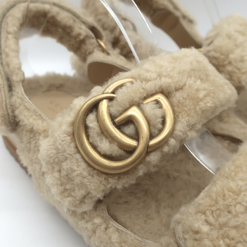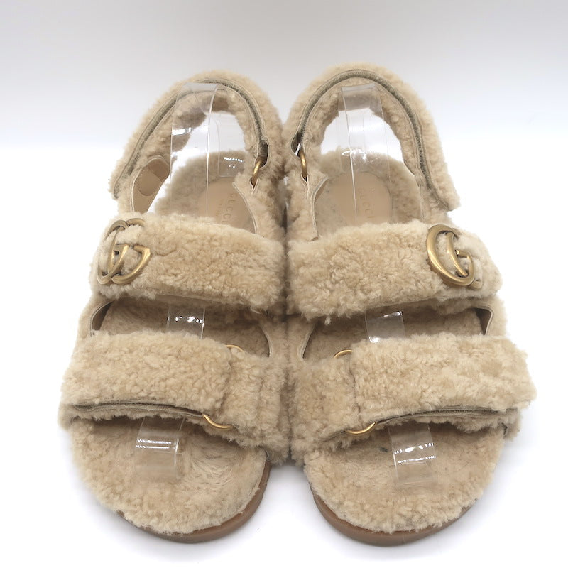Gucci Double G Shearling Dad Sandals Beige Merino Wool Size 40