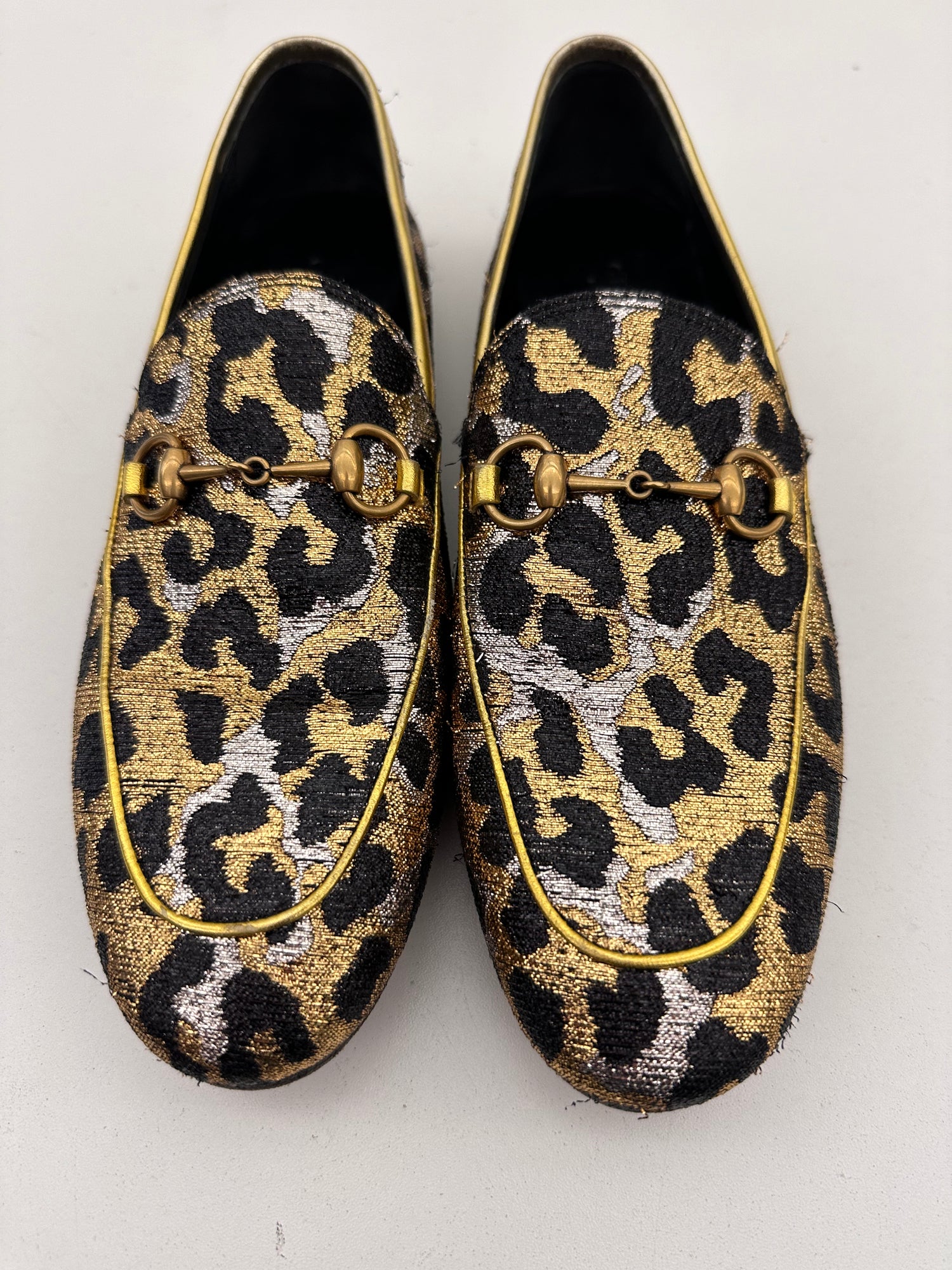 Gucci Jordaan Horsebit Loafer With Leopard Print Jacquard Sz 38.5 Measurements