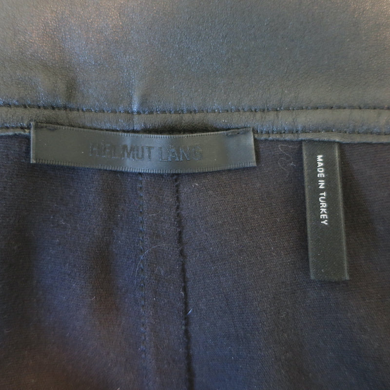 Helmut Lang Leather-Trim Top Black Viscose Size Small Long Sleeve Blouse