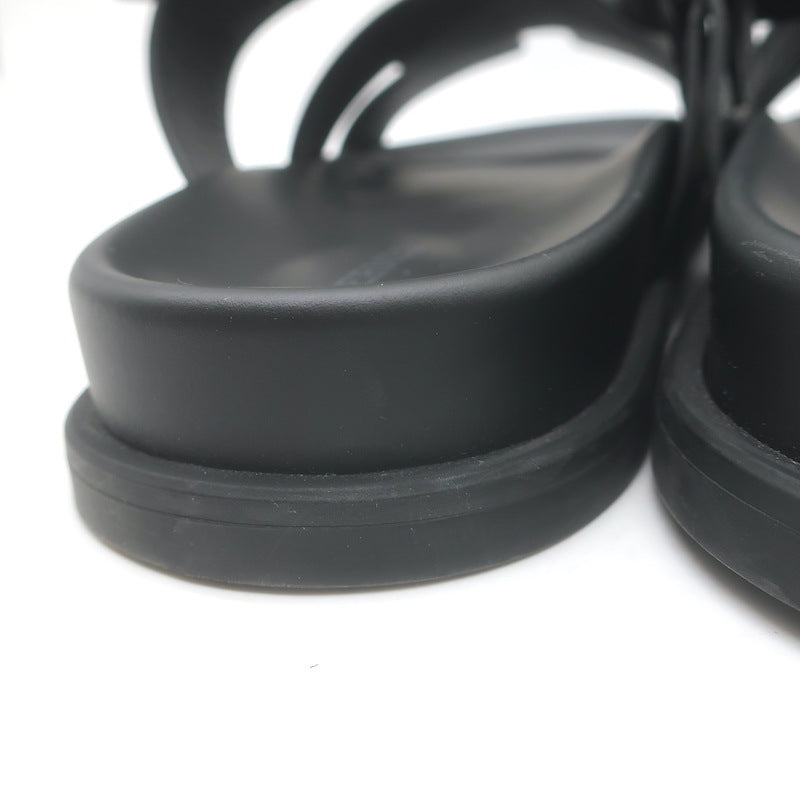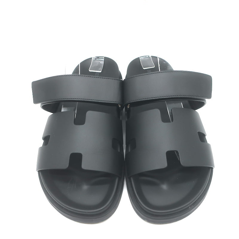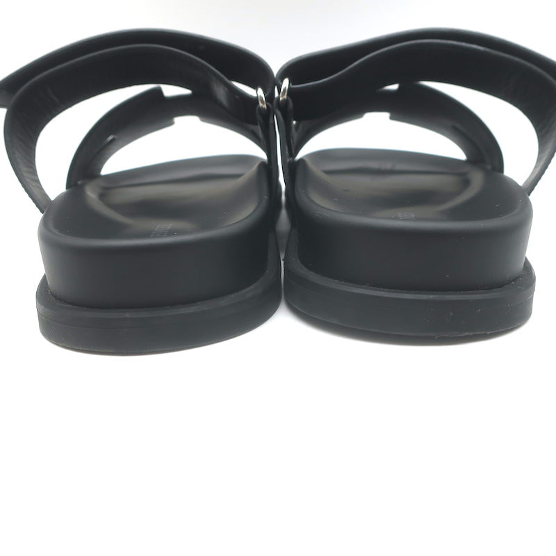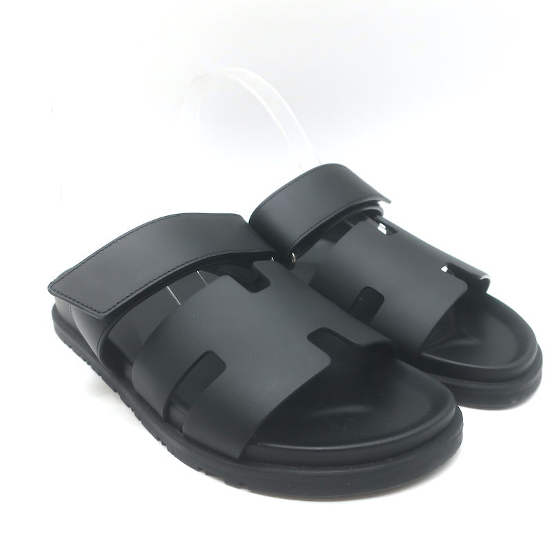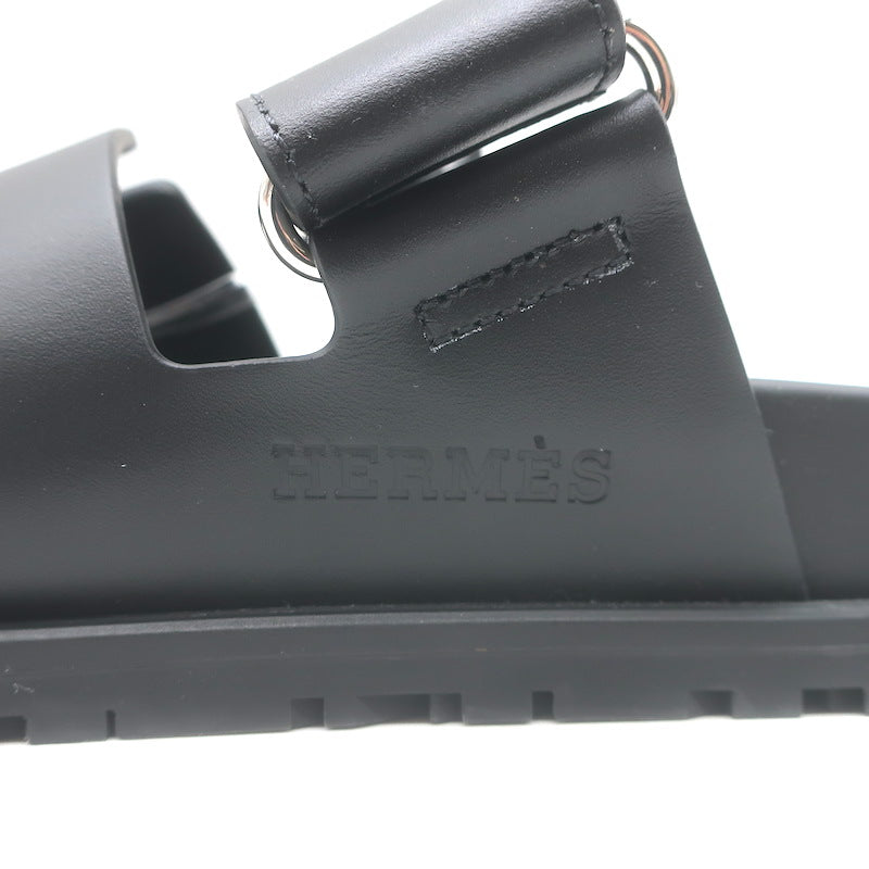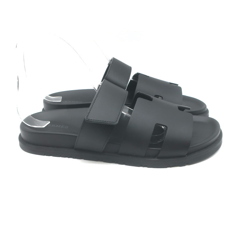 Hermes Chypre Slide Sandals Black Leather Size 40.5
