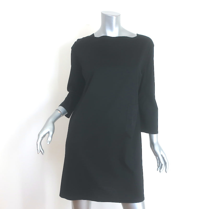Hermes Embroidered-Pocket Bateau Mini Dress Black Cotton Size 38