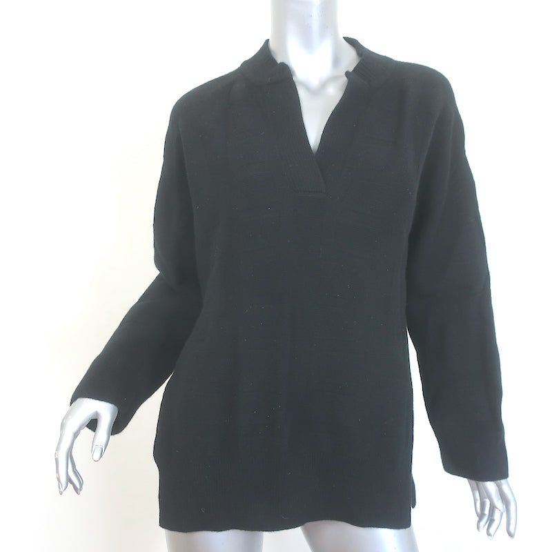 Hermes H-Intarsia Knit Sweater Black Virgin Wool Size 34 Measurements