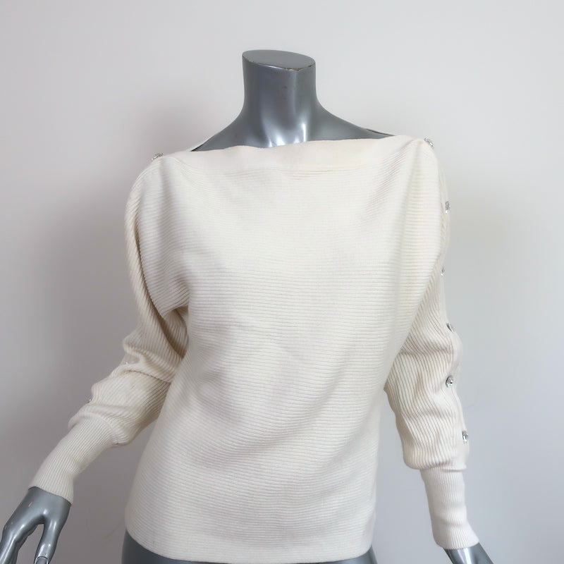 Intermix Crystal-Embellished Sweater Breanne Cream Cotton-Cashmere Size Petite