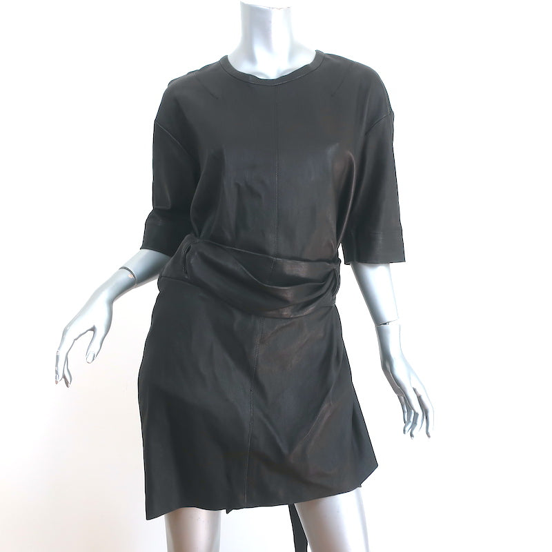 IRO Leather Wrap Dress Abigail Black Size 40 Short Sleeve Mini
