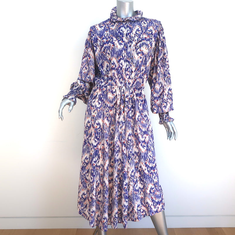 Gently worn. Good condition. No major flaws, a few thin runs in fabric are mostly camouflaged by print. Dress does not have pockets. Retails for $740!