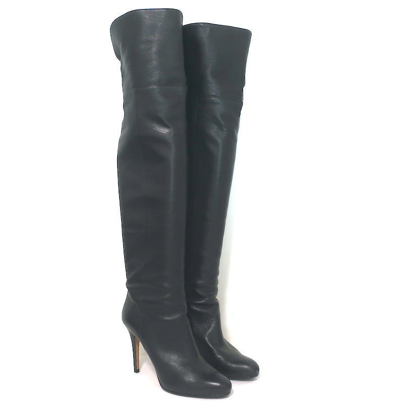 Jimmy Choo Over the Knee Boots Black Grained Leather Size 37.5 High Heel Measurements