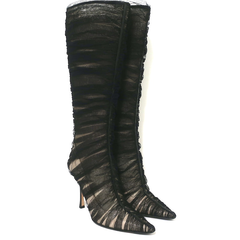 Gently worn. Good condition. No major flaws, light wear on very tips of toes. A few faint scuffs on heels. Gray smudging on insoles. Does NOT come with box or dustbag.
