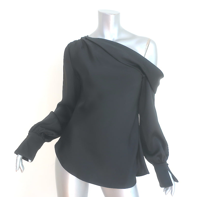Jonathan Simkhai Alice One-Shoulder Top Black Satin Size Small Measurements