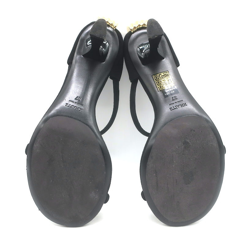 KHAITE Seigel Two-Strap Sandals Black Suede Size 37