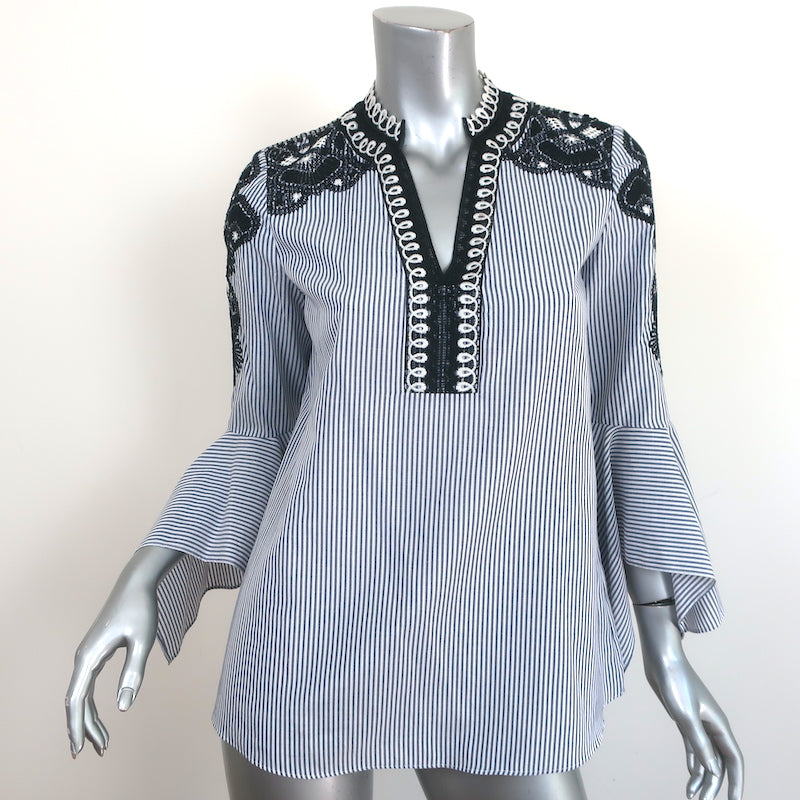 Kobi Halperin Blouse Skylyn Blue Lace-Trim Striped Cotton Size Extra Small NEW Measurements