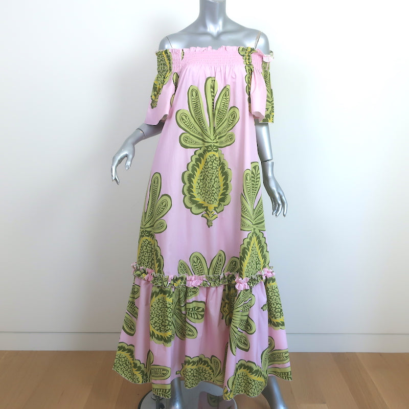 La DoubleJ Capalbio Maxi Dress Pink Big Pineapple Print Size Extra Small NEW