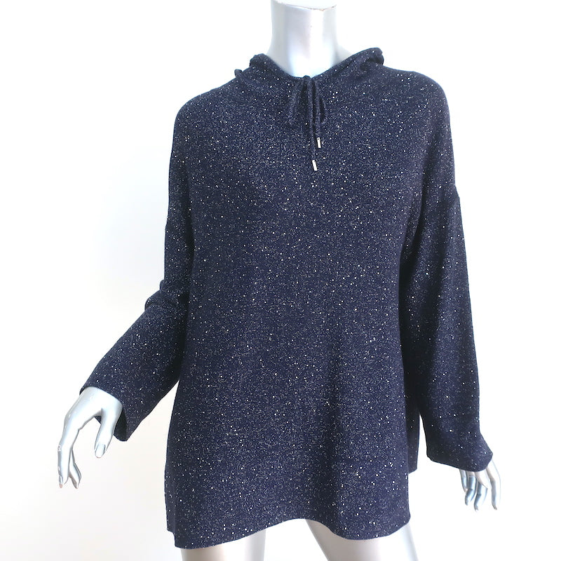 Lafayette 148 Sequin Oversized Hoodie Navy Silk-Wool Size Large Pullover Sweater