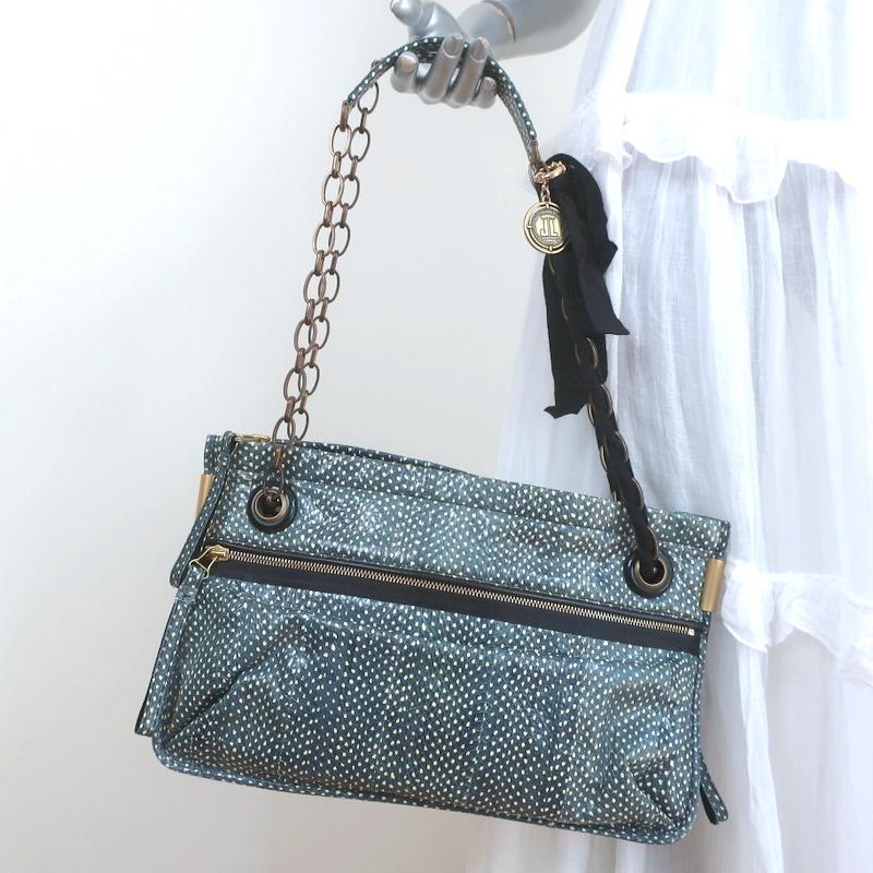 Lanvin Amalia Shoulder Bag Blue Snakeskin Chain Strap Medium Crossbody