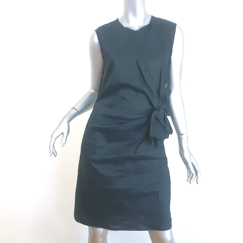 Lanvin Bow Dress Navy Stretch Linen Size 40 Sleeveless Sheath Measurements