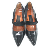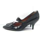 Lanvin Mary Jane Pumps Black Patent Leather Size 37.5 Pointed Toe Heels