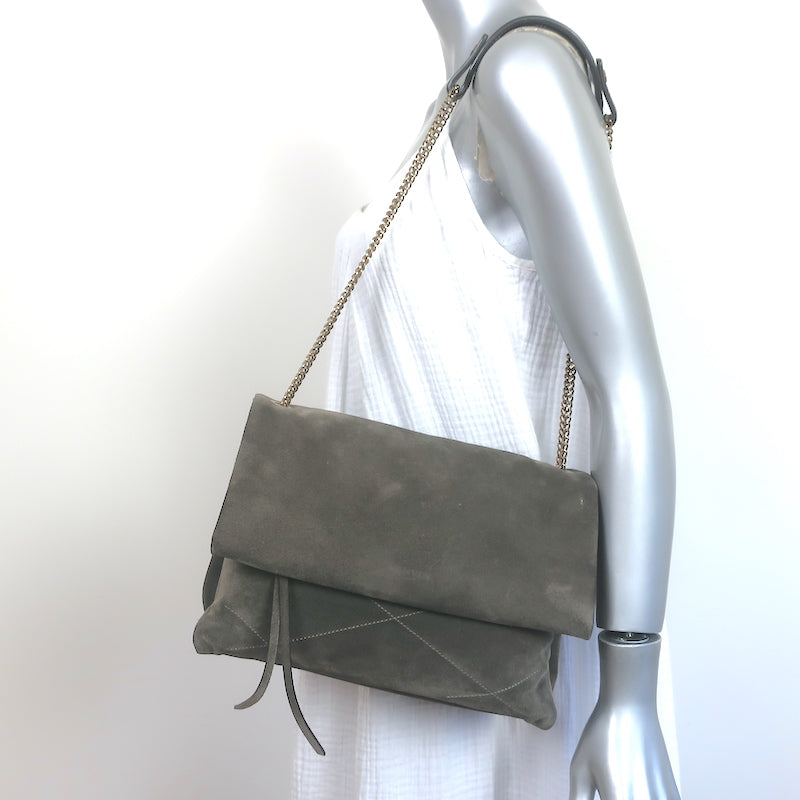Lanvin Medium Sugar Chain Strap Shoulder Bag Gray Suede
