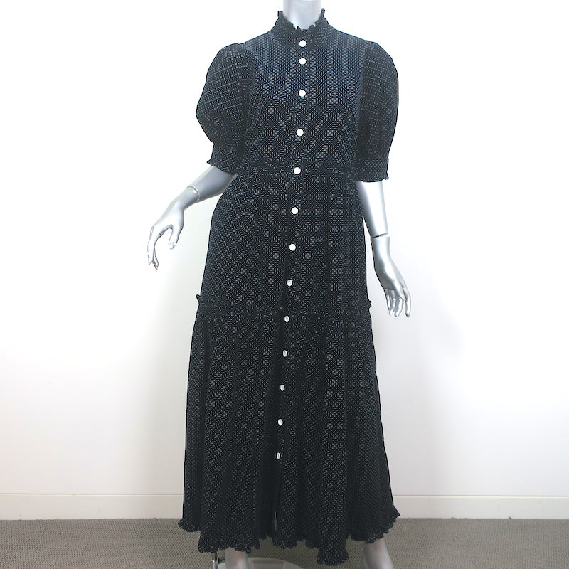 Lee Mathews Puff Sleeve Maxi Dress Lily Navy Polka Dot Corduroy Size 1 Measurements