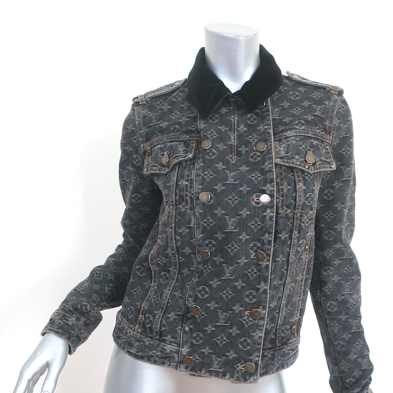 Louis Vuitton Monogram Denim Jacket with Velvet Collar Black Size 38