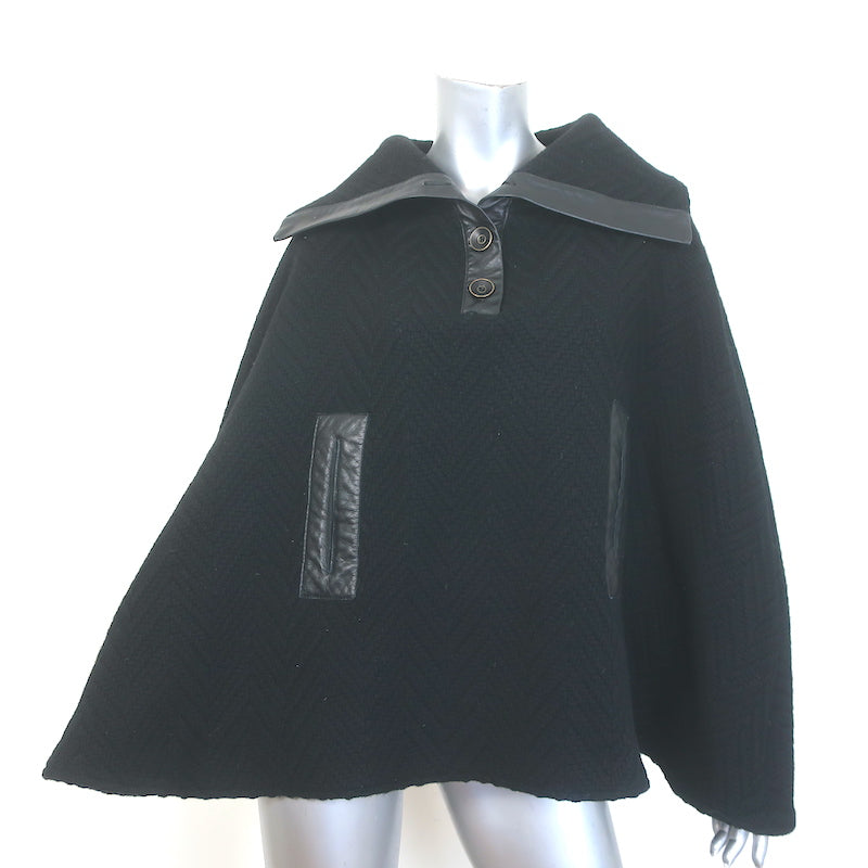 Mackage Tweed Cape Jacket Black Leather-Trim Wool-Blend Size Medium