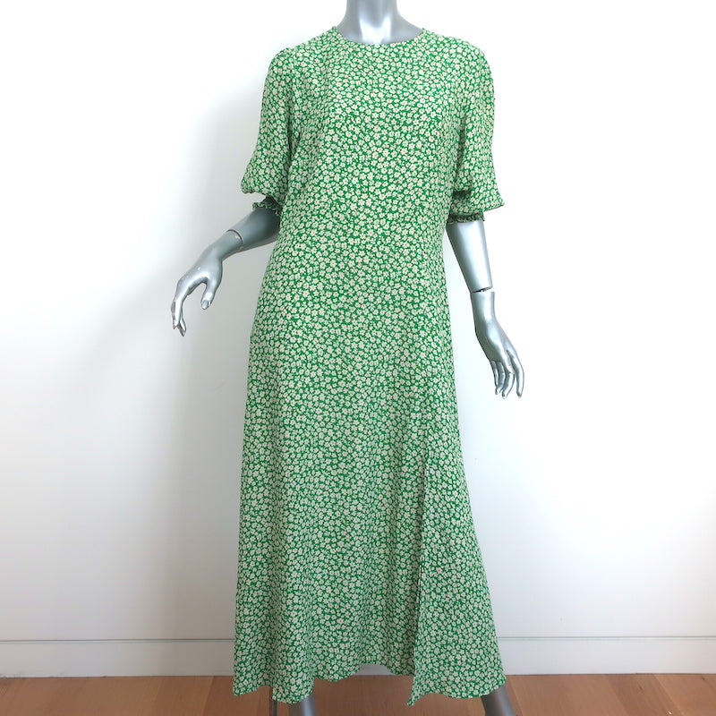 Mango Midi Dress Carol Green Ditsy Floral Print Crepe Size Extra Large