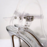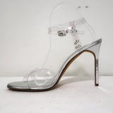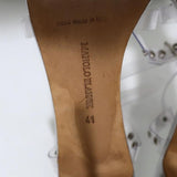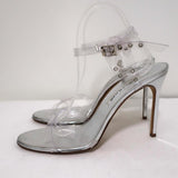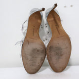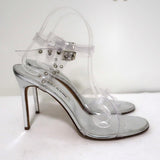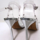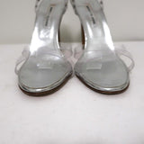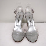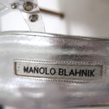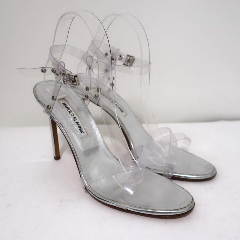 Manolo Blahnik PVC Crisscross Sandals Silver Leather Size 41 Ankle Strap Heel