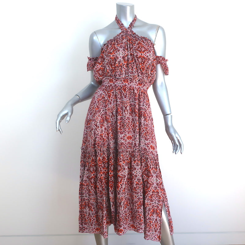 MISA Halter Midi Dress Callie Marseille Pink/Red Printed Rayon Size Extra Small Measurements