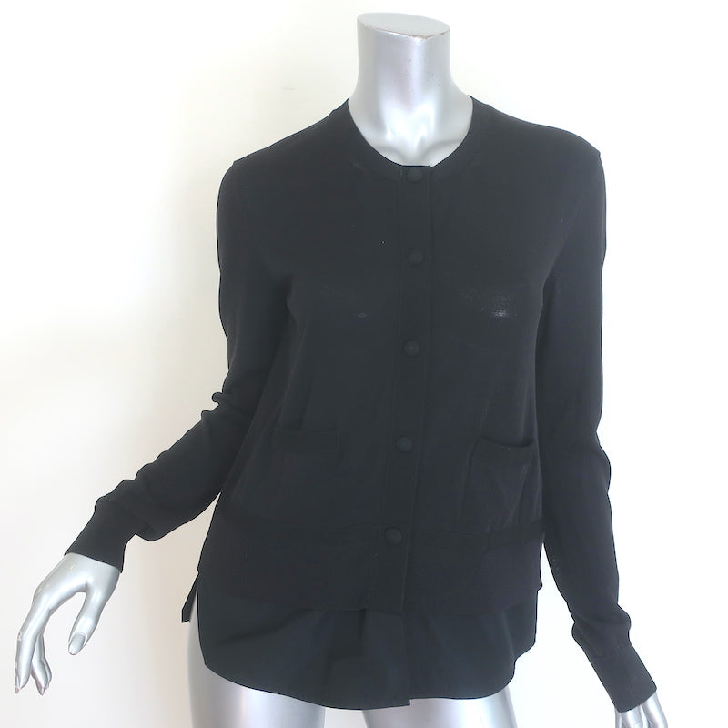 Moncler Pleated-Back Mixed Media Cardigan Black Cotton-Blend Size Small Measurements